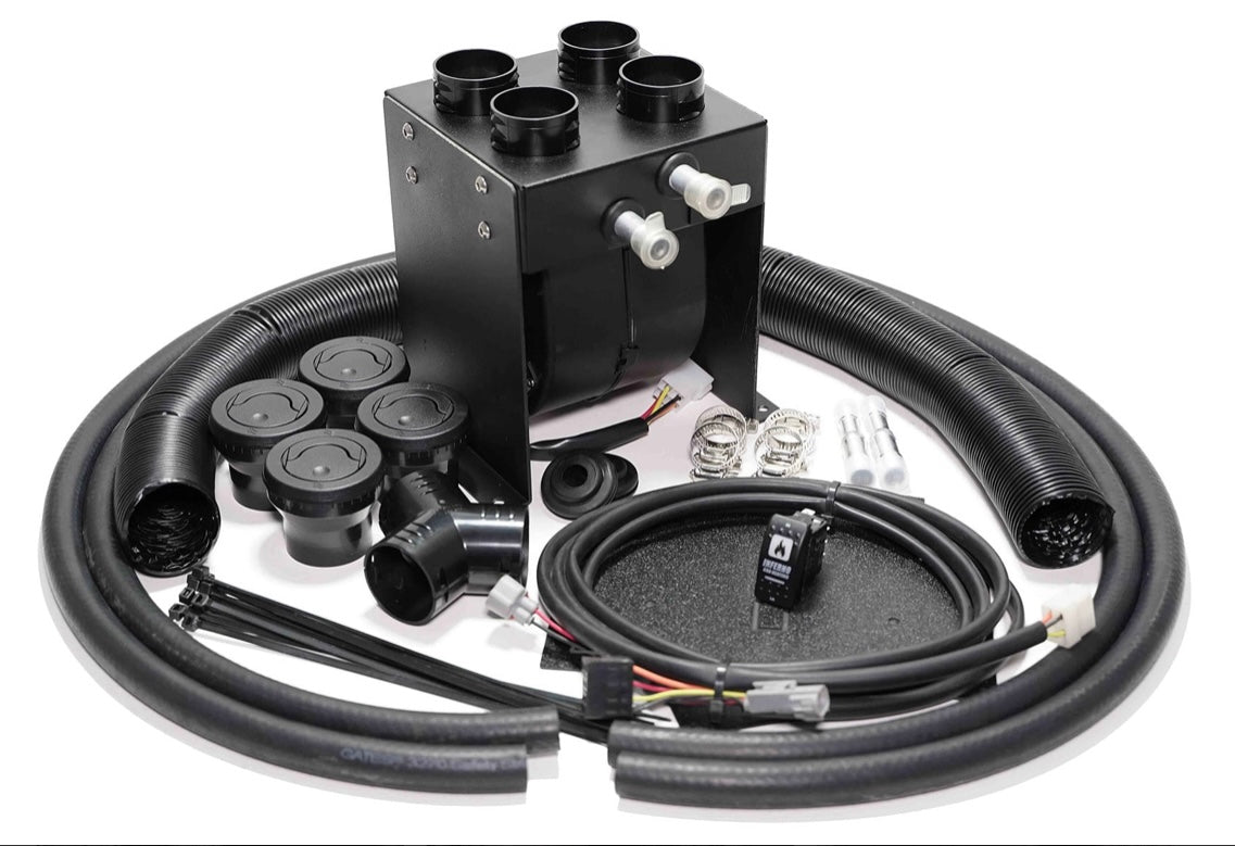 - Includes all necessary components: heater hose, hose splicers, hose clamps, mounting brackets, defrost and floor louvers, ductwork & wiring.